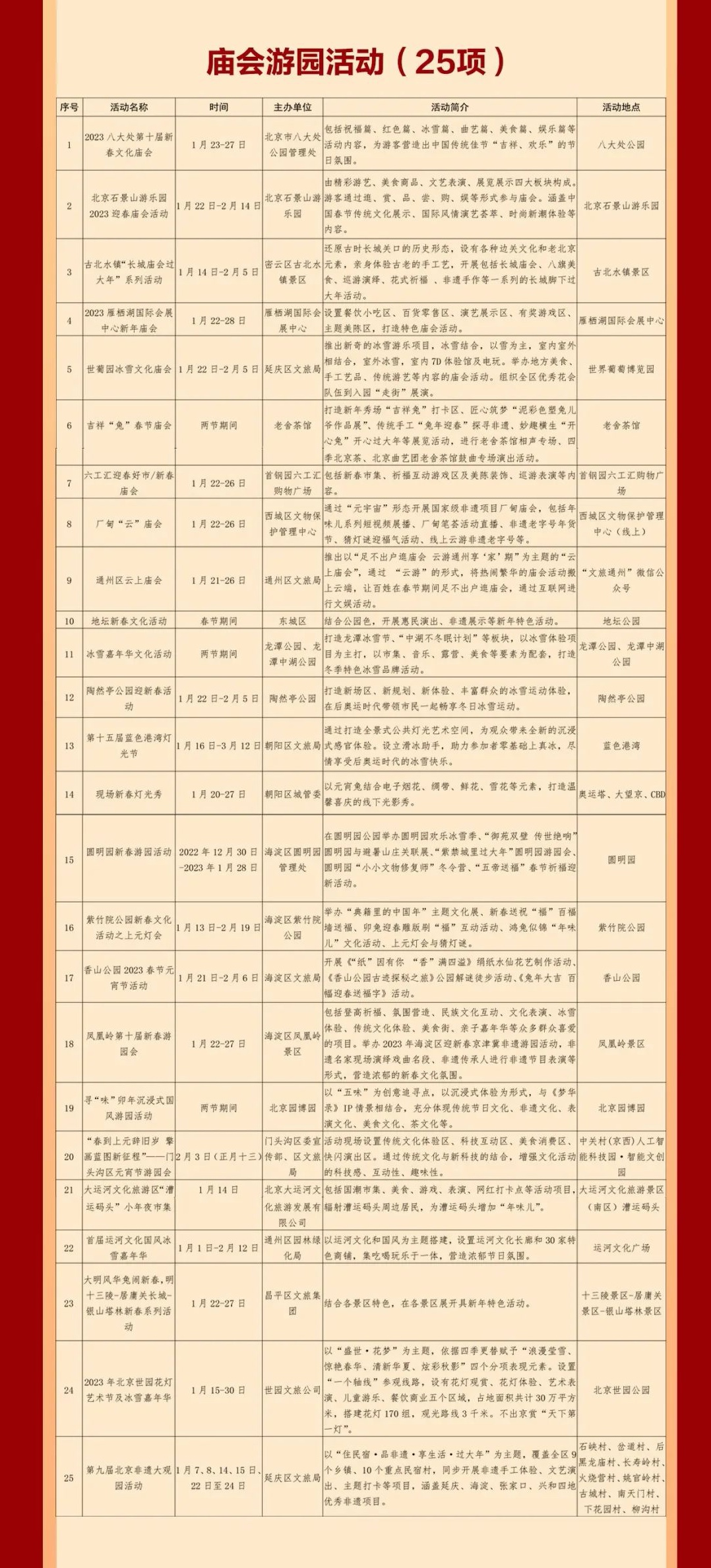 其中,10 個傳統(tǒng)形式廟會和2個“云”廟會線上線下同歡樂。石景山游樂園迎春廟會由精彩游藝、美食商品、文藝表演、展覽展示四大板塊構成,涵蓋中國春節(jié)傳統(tǒng)文化展示、國際風情演藝薈萃、時尚新潮體驗等內容;古北水鎮(zhèn)長城廟會還原古時長城關口的歷史形態(tài),設有各種邊關文化和老北京元素,開展長城廟會、八旗美食、巡游演繹、花式祈福 、非遺手作等一系列“長城腳下過大年”活動;廠甸“云”廟會通過“元宇宙”形態(tài)開展國家級非遺項目廠甸廟會,帶來年味兒系列短視頻展播、廠甸筆薈活動直播、非遺老字號年貨節(jié)、猜燈謎迎福氣活動、線上云游非遺老字號等。