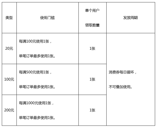 5.消費(fèi)券使用有效期與發(fā)放時(shí)間周期同步。