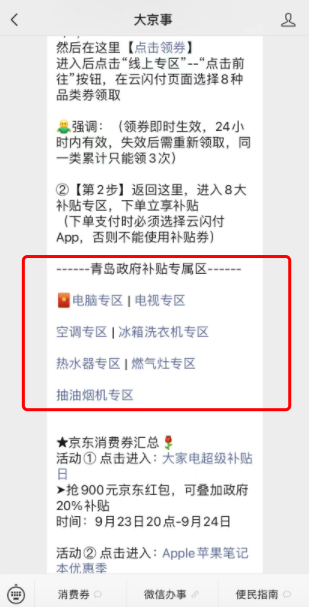 沒(méi)有云閃付App需先自行下載,已有云閃付的可直接在「大京事」公眾號(hào)回復(fù)“青島消費(fèi)券”進(jìn)入領(lǐng)券入口。