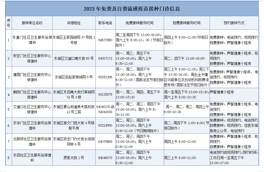 北京東城區(qū)流感疫苗接種門診服務(wù)時間公示來了,具體事宜可咨詢接種門診