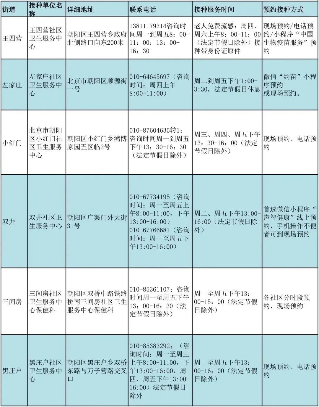 北京朝陽區(qū)流感疫苗接種門診服務(wù)時(shí)間公示來了,具體事宜可咨詢接種門診