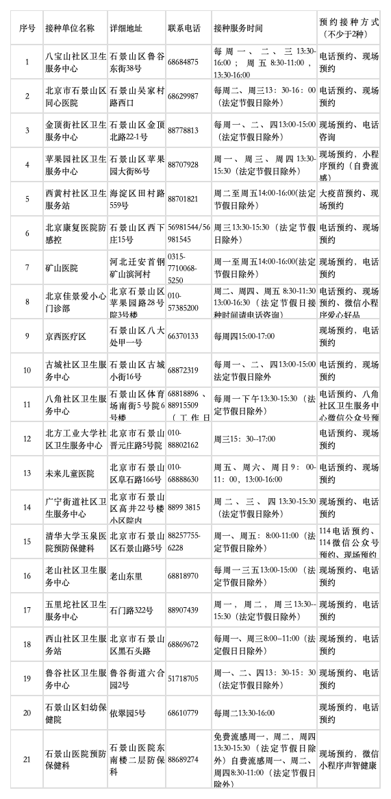 北京石景山區(qū)流感疫苗接種門診服務時間公示來了,具體事宜可咨詢接種門診