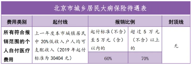 北京市政策規(guī)定,低保、低收入、特困等困難群體參保人員的大病保險起付線減半,各費(fèi)用段大病保險報銷比例分別提高5個百分點(diǎn),上不封頂。